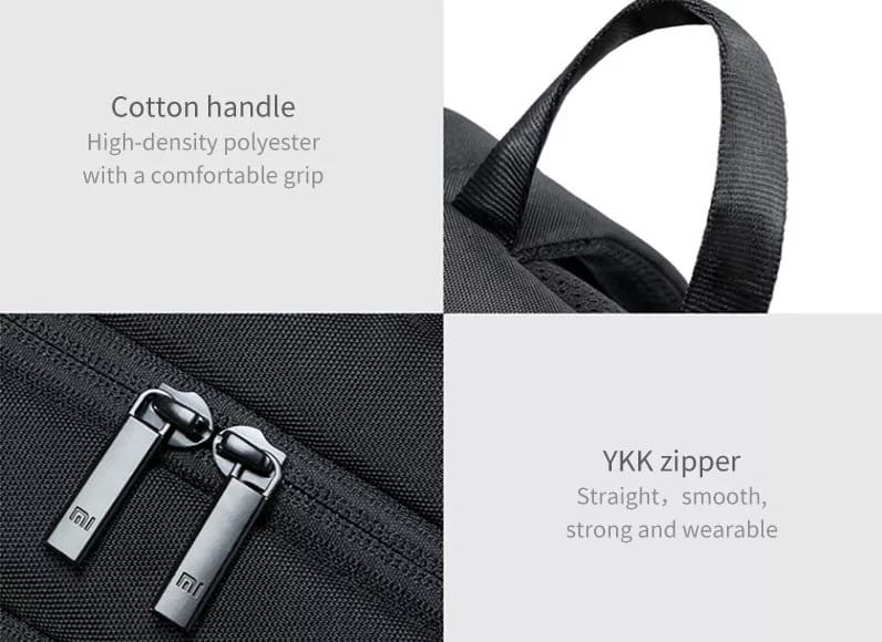 Новый рюкзак Xiaomi выполнен из прочной ткани Оксфорд 900D и внешнего слоя из стойкой ткани 600D. Такая ткань широко применяется для изготовления рюкзаков благодаря своей высокой прочности и универсальности. Лицевая поверхность рюкзака имеет гидрофобное покрытие, которое прекрасно защищает содержимое от брызг и не боится внезапных капризов погоды.